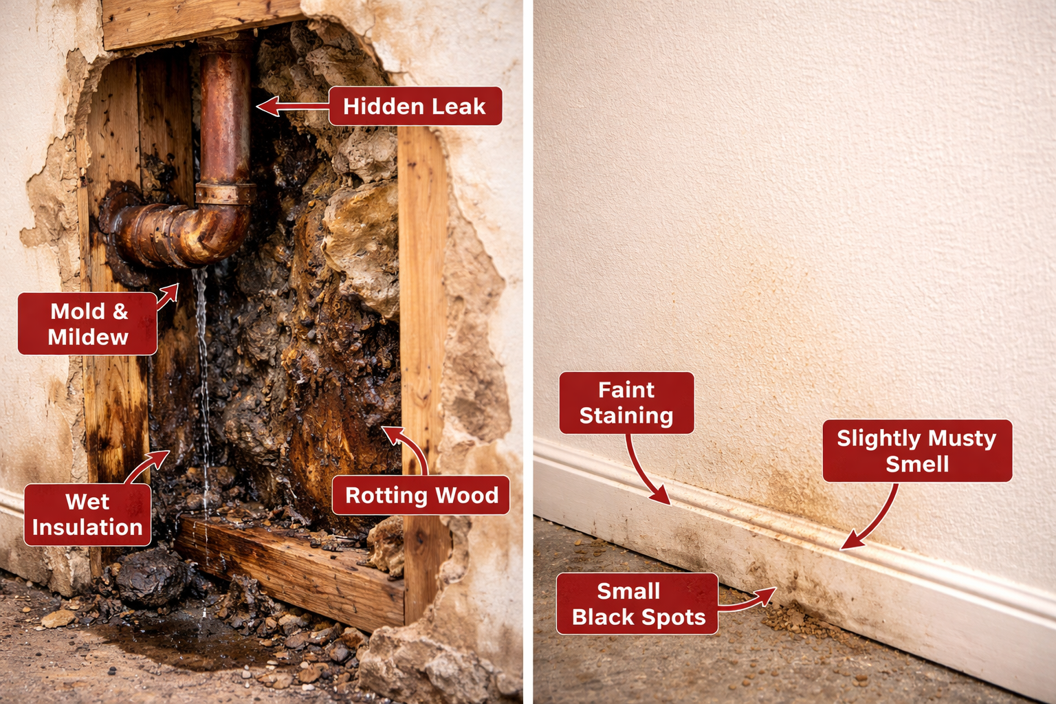 If you notice dripping sounds, stains, musty smells, or higher water bills—act quickly. Fixing a leak early can save you thousands.